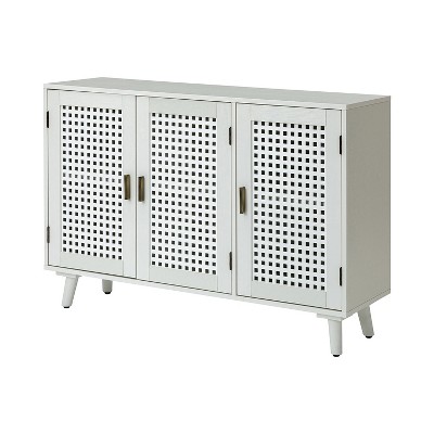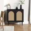 Simplify your space with this 2-door decorative contemporary cabinet with natural materials and ample storage. Crafted from solid and manufactured woods, it has a rustic, organic look and clean silhouette. Rattan doors open to reveal two interior shelves with plenty of room for cutlery, linens, or barware. We love the overall rustic palette that complements the modern design with contemporary vibe. The color of this cabinet blends seamlessly with any existing color scheme in your living room or entryway. Item Size: 32"Wx15.7"Dx32"H