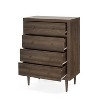 Mid-century modern style: With sleek tapered legs and a stunning wood look, this four-drawer dresser uses new materials to reimagine a traditional design.