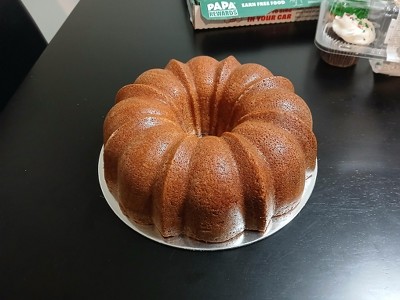 Q: What is the time and temperature needed for 1 box of cake mix in the Bundt cake pan?