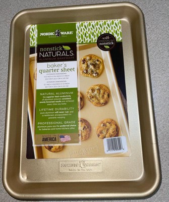 The Naturals Aluminum NonStick Baker's Quarter Sheet 2 Pack is a great addition to your baking pans. Now that it’s down to just two of us in the house they’re really convenient to use. Everything bakes and then beautifully from chocolate chip cookies the biscuits absolutely love them.