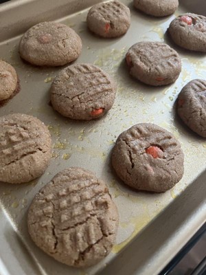 I really like these sheets! I usually use parchment paper but I wanted to see how well they worked. I made peanut butter cookies and absolutely no stickage! It was super easy to clean and they are the perfect size for 2 people. They aren’t as heavy as my Wilton pans but they preform the same in my opinion.