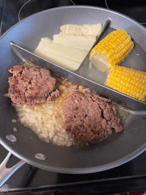 Love love love this pan! I wanted to give it a full try so I grilled burgers and onions in one section, fired cheese in another section and boiled corn in another section (ended up having to cut it off the cob). I am going to use this pan everyday as I am gluten free and my husband is not. With the divided sections I don’t have to use 2 pans to make meals. (I have a Gluten sensitivity not an allergy). The pan was easy to clean and I really can’t say enough good things about it!