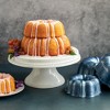 Indecision conquered! A pretty trio of our formed aluminum Bundt® Pans. Three sizes: 3, 6, 12 cups, so you don't have to pick just one! The beautiful Twilight Blue exterior is paired with a premium nonstick interior for easy release and cleaning.Northern Lights Bakeware is inspired by the beautiful aurora borealis in the night skies and infuses a pop of color that bakers are seeking with the best baking properties of aluminum. The beautiful exterior color is paired with a premium nonstick interior for easy release and cleaning. Our “Northern Lights” pans are lighter than our heavy cast aluminum pans, but they are built to last. They are durable, economically priced performers! These stackable cakes create a beautiful 3-tiered presentation for weddings, birthdays and other Bundt®-worthy occassions.