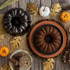 Celebrate the beauty of the harvest season and autumn gatherings with the Nordic Ware Bronze Cast Bundt Pan, the original Bundt pan in a classic bronze finish. Part of the Fall Cast Bakeware Collection, this iconic Bundt pan turns everyday recipes into show-stopping centerpiece cakes, breads, or even gelatin molds. Expertly crafted from heavy cast aluminum, it delivers even heat distribution, crisp, detailed patterns, and long-lasting durability. The fluted central tube ensures even baking of dense batters every time, producing perfectly golden, uniform results for all your favorite fall-inspired recipes.The premium nonstick interior guarantees effortless release and easy cleanup, while hand washing is recommended to extend the life of the coating. With a full 12-cup capacity, this pan is ideal for Bundt cakes, pull-apart breads, monkey bread, or molded gelatin desserts. Oven safe up to 400°F, the Bronze Cast Bundt Pan combines timeless design, superior baking performance, and seasonal charm for autumn celebrations, holiday gatherings, and festive entertaining.