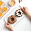 Bake perfectly portioned, show-stopping treats with the Nordic Ware Classic Bundt Duet Pan, a stunning addition to any baker’s collection. Crafted from heavy cast aluminum with a radiant gold finish, this versatile 5-cup pan features two iconic Bundt designs—the Anniversary Bundt and the Heritage Bundt—each with a beautifully fluted center tube that promotes even baking and creates elegant, sculpted cakes every time.Ideal for smaller portions, mini loaves, or tasting multiple flavors, this pan is perfect for holidays, entertaining, or gifting beautifully detailed Bundt cakes. The premium nonstick interior ensures effortless cake release and easy cleanup, preserving every swirl and curve. Durable cast aluminum construction provides superior heat distribution for consistent, golden-brown results with every bake. Whether finished with a light glaze, drizzle, or dusting of powdered sugar, your creations will always impress with this gold finished Bundt duet pan. Oven safe to 400°F and hand wash recommended to maintain its elegant finish and lasting performance.
