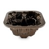 Create a boo-tiful Halloween centerpiece for your dessert table with the Nordic Ware Haunted Manor Bundt Pan! This ghostly 10-cup Bundt pan features a unique fluted design with intricate detailing, including whimsical pumpkins, eerie cobwebs, and spooky architectural accents. Though it doesn’t look like a traditional Bundt pan, it is constructed like one, with a central tube that promotes even heat distribution, allowing larger and denser cakes to bake uniformly while preserving sharp details. Once baked, your cake becomes the ultimate canvas for decorating—add marshmallow spiderwebs, chocolate ghosts, candy pumpkins, or a drizzle of frosting to bring your haunted mansion to life. For a truly spooky Halloween dessert spread, pair this Bundt pan with the Haunted Skull Cakelet Pan to create a full haunted-themed centerpiece.Crafted from durable cast aluminum, this Halloween bakeware ensures consistently golden-brown results. The premium nonstick interior allows effortless release and easy cleanup, while the festive bronze finish adds seasonal charm and spooky elegance. An essential piece of the Nordic Ware Halloween Cast Bakeware Collection, this pan transforms ordinary recipes into unforgettable Halloween desserts, spooky cakes, and themed treats. Oven safe up to 400°F and hand wash recommended..