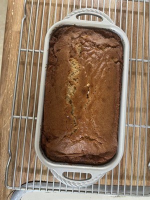 The Nordic Ware Classic Loaf Pan is the perfect choice for home bakers who want professional-quality results with every bake. Crafted from heavy cast aluminum with a sleek graphite color finish, this premium loaf pan ensures superior heat conduction for even baking, producing moist interiors and perfectly browned crusts every time. With its 1-pound capacity, it’s ideal for homemade bread, meatloaf, pound cake, and other favorite baked dishes.Designed for durability, performance, and timeless beauty, this heirloom-quality pan is built to last for generations of baking enjoyment. The premium nonstick coating guarantees effortless loaf release and quick, easy cleanup, saving time in the kitchen. Perfect for everyday use, holiday baking, or special gatherings, the Nordic Ware Classic Loaf Pan adds elegance and reliability to any kitchen. From golden sandwich loaves to savory dinner creations, it delivers consistent, bakery-level results that make baking both satisfying and inspiring. Hand wash recommended; oven safe up to 400°F.