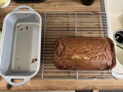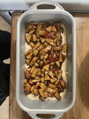 This pan is amazing. It baked my pineapple upside loaf perfectly! Beautiful even bake. It cleaned up super easy too, which is hard to do sometimes with that brown sugar topping. This is my new favorite pan!