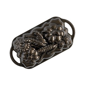 Celebrate the flavors and beauty of autumn baking with the Nordic Ware Sunflower & Pumpkin Loaf Pan, a festive fall loaf pan designed to turn everyday recipes into harvest-inspired breads and desserts. With a generous six-cup capacity, this pan is perfect for pumpkin spice bread, sunflower seed loaves, apple cinnamon quick breads, or other seasonal treats, transforming every bake into a stunning centerpiece. Crafted from heavy-duty cast aluminum, it ensures even heat distribution for consistently golden-brown loaves with crisp, well-defined details.The pan features an intricately sculpted sunflower and pumpkin design, while the elegant braided handles make lifting and transferring easy, adding both charm and practicality. Perfect for holiday gifting, Thanksgiving desserts, or fall celebrations, the premium nonstick interior allows for effortless release and easy cleanup, so your loaves emerge beautifully every time. Add a drizzle of glaze, a touch of icing, or a dusting of confectioners’ sugar to highlight the detailed design. Oven safe up to 400°F and hand wash recommended, this Sunflower & Pumpkin Loaf Pan brings the warmth and joy of autumn baking straight from your oven to your table.