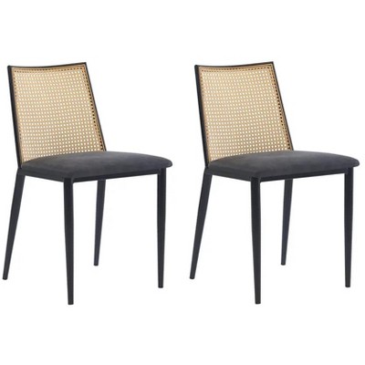 Nordlys Set of 2 Metal Dining Chairs with Cane Backs and Black Seats Modern Design Style Upholstery Dining Room