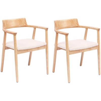 Product Name: Nordlys Set of 2 Wood and White Bouclé with Armrests Dining Chairs Exotic Boho Dining Room