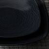 The Colorscapes collection features organic motifs subtly interpreted as a tone-on-tone surface decoration. The entire collection is available in place setting components (dinner plate, salad plate, soup/cereal bowl, and mug) as well as extensive accessories, to mix and match in your own curated dinnerware collection. BoB Swirl has an allover black-on-black pattern of coiling concentric circles.