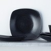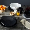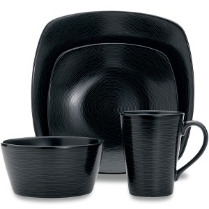The Colorscapes collection features organic motifs subtly interpreted as a tone-on-tone surface decoration. The entire collection is available in place setting components (dinner plate, salad plate, soup/cereal bowl, and mug) as well as extensive accessories, to mix and match in your own curated dinnerware collection. BoB Swirl has an allover black-on-black pattern of coiling concentric circles.