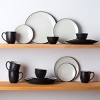 Colorwave Graphite features a matte coloration suggestive of cast iron, caviar, lava rock, and black leather. Most items also have a glossy, cream-colored glaze on the inside. Mix and match the different shapes and add a splash of color to your table! Colorwave offers place setting components as well as an array of serving pieces and accessories.