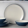 Colorwave Blue features a matte coloration suggestive of the deep sea, blueberry pie, sapphires, and the midnight sky. Most items also have a glossy, cream-colored glaze on the inside. Mix and match the different shapes and add a splash of color to your table! Colorwave offers place setting components as well as an array of serving pieces and accessories.