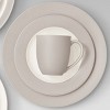 - Includes a dinner plate, salad plate, bowl, and mug