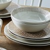 A variety of khaki and white motifs adorn Noritake's Khaki Hammock dinnerware in dishwasher-and-microwave-safe porcelain. Each piece incorporates dots, stripes or other patterns in different ways to give this distinctive casual dining collection a mix-and-match look as well as a fresh and modern appeal.