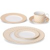 - Set includes 1 dinner plate, 1 salad plate, 1 bread and butter/appetizer plate, 1 cup, and 1 saucer