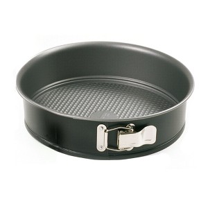 This baking pan is a versatile and durable tool for making a variety of dishes, including cheesecakes, coffee cakes, quiches, and more.Its durable steel construction, combined with a nonstick coating, ensures effortless release of baked goods and easy cleanup afterward.The spring latch mechanism provides a tight and leakproof seal, which is crucial for preventing any batter or filling from leaking out during baking. Additionally, the dark finish of the pan is designed to absorb heat rather than reflect it, which can help achieve more even baking and browning of the crust or edges.Hand washing is recommended.