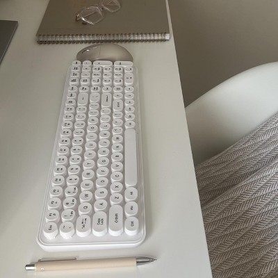 North Full Size Round Pop Key Wireless Keyboard - White: 105 Keys, Radio Frequency
