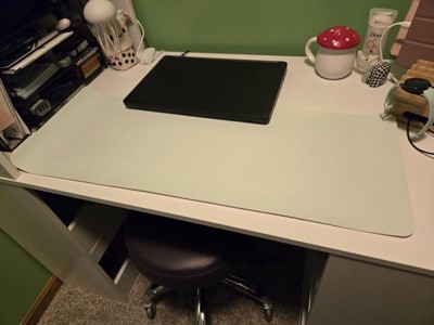 This is a pretty nice desk mat, in an enjoyable mint green color. I primarily work on a laptop at our kitchen table, so I've liked using this as a way to delineate my work space - plus it's a built-in mouse pad! My two qualms with the mat - it was very stinky out of the box (I let it air out for awhile) and it was difficult to get it to lay flat. Other than those points, it's a nice addition to my work space.