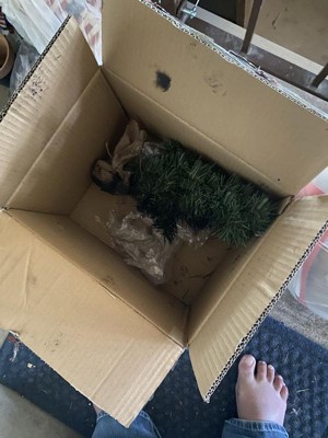 Opened up the box and the tree was bent at the base. Tried to straighten up and there was black machine type oil all over the tree. It was seald good from the factory. Think it happedf there. Got all over my hands and clothing before I realized how bad oit was. Hard to get off both. Smells so oily that I had to puttrr and box outside. Have to find another before the next 5 days are gone. Really upset!