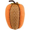 This pumpkin decoration is a striking addition to your autumn and Thanksgiving decor. Featuring a vibrant orange pumpkin, this piece combines rustic charm with farmhouse-inspired design through its blend of orange burlap and woven jute materials. The textured finish captures the look of a real pumpkin while offering durability for seasonal use year after year. Perfect for display on dining tables, entryway consoles, mantels, or buffet areas, this decorated pumpkin adds height and dimension to any fall arrangement. Its bold orange color makes it a standout focal point, while the burlap and jute weave bring natural texture and warmth to your seasonal displays. This pumpkin decoration pairs beautifully with autumn leaves, acorns, pinecones, and other harvest-themed accents, creating a cohesive and inviting fall setting for your home. Whether used as part of a Thanksgiving centerpiece or as a standalone statement piece, this pumpkin decor enhances the festive atmosphere of your living space. Its freestanding design allows for versatile placement, making it easy to arrange on any flat surface. Bring a touch of harvest charm and rustic elegance to your seasonal decorating with this beautifully crafted Thanksgiving decoration.