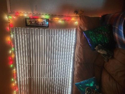 Brighten your holiday decor with these multi-color incandescent holiday string lights featuring 100 classic mini bulbs on a green wire. The vibrant multi-color bulbs include red, green, blue, pink, and orange, creating a cheerful and festive glow for holiday trees, garlands, wreaths, and outdoor displays. With a lighted length of 20.25 feet and a total length of 21.5 feet, bulbs are spaced 2.5 inches apart to provide even, consistent lighting. These UL-certified holiday lights include a 12-inch lead cord and a 3-inch tail cord for quick, hassle-free setup. Designed with a stay-lit feature, if one bulb burns out, the rest stay lit, ensuring a continuous glow. The built-in lamp lock feature secures bulbs in place while making them replaceable. Extra bulbs and spare fuses are included. The end-to-end connectors allow you to connect up to 5 sets, making them perfect for wrapping large trees, banisters, mantels, and outdoor displays. Ideal for indoor and outdoor decorating, these multi-color holiday lights bring a joyful sparkle to any space, season after season.