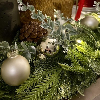 These glass ball ornaments are so cute, chic and the perfect thing to dress up a garland. They are quite light and I love the two different finishes. While the case they come in is plastic and nothing special, each space hugs the ornaments to make sure they arrive secure. I might consider keeping it to store them after the holidays. The shiny and matte balls give vintage nostalgic Christmas yet are still modern. These are perfect, not only for a garland but also for a small tree, to put in a bowl or large glass vase… the applications are endless!