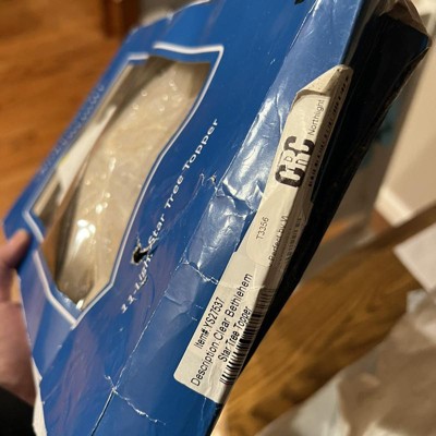 Add a touch of elegance to your holiday tree with this stunning star tree topper! Crafted with clear lights and embellished with iridescent glitter, this topper will bring a magical sparkle to your holiday decor. The frosted clear and rose gold color combination adds a modern twist to the classic star design, making it a perfect complement to any tree.