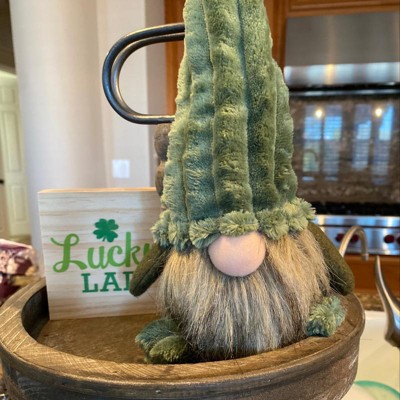 Gnomes are best known for guarding Earthly treasures, providing good luck, and are perfect for protecting your holiday goodies. This standing gnome is wearing a green felt suit and a Soft traditional hat. Perfect on mantles, tabletops, or guarding your tree.