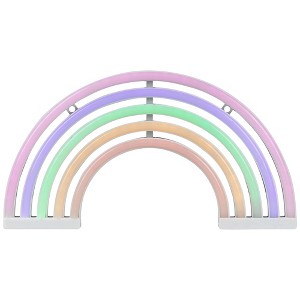 Brighten up your home decor with this delightful neon wall sign. This colorful lighted rainbow comes ready for hanging with keyhole hooks at the top and can be hung on a wall or used as a window sign. Perfect to use as a night light or wall decor.