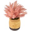 Effortlessly bring a touch of nature indoors with this stunning potted plant. This artificial, pink Astilbe plant mimics the intricate patterns and textures of its living counterpart, to provide an authentic appearance. The rustic ceramic pot is designed with a color block scheme of dark, mustard yellow and chocolate brown, for an earthy feel. Display on mantles, countertops or give as a gift to a friend or family member.