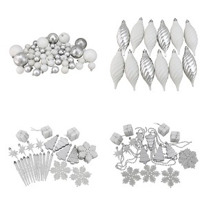 Northlight 125ct Shatterproof 4-Finish Christmas Ornament Set 5.5" - White/Silver