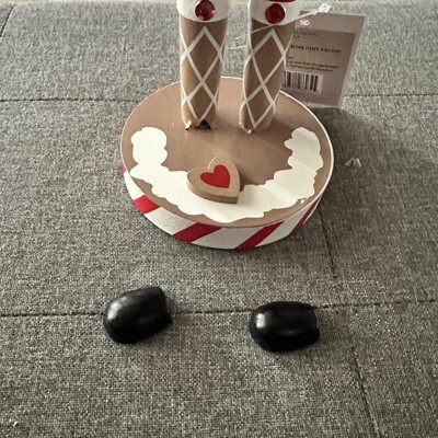 Base is accented with a heart-shaped beige and red cookie