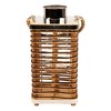 Bring warmth and texture to your space with this 15.5" rattan and glass candle lantern. The open-air design showcases horizontal bands of natural and dark-stained rattan, paired with metallic accents for a subtle contrast. A clear hurricane glass inside holds a pillar candle up to 3.25" in diameter, offering soft, steady light. The rectangular shape with rounded corners and a sturdy jute rope handle make it easy to carry or hang wherever you need a cozy glow.