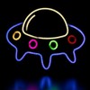 Cue the close encounters – this spaceship neon sign is landing in style! Shaped like a classic alien spaceship with glowing accents, our 12” x 16” flying saucer light is ready to abduct boring decor. The rope-style neon LED lights stay cool to the touch and plug in easily with the included USB cable and wall adapter. Whether you're lighting up a space-themed room, creating a retro sci-fi vibe or just adding a little extraterrestrial charm, this neon light sign is totally out of this world.