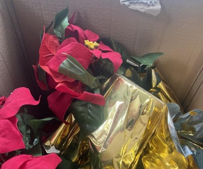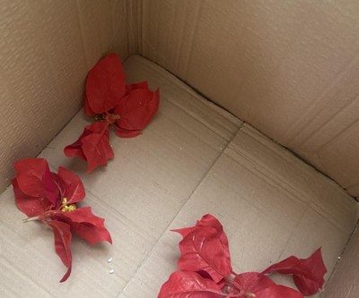 The box looked like it had been recycled from the trashcan. When I opened the box, the poinsettia plants looked as if they were just tossed into the box. There was no protective wrapping, Some were upside down inside the box, while others were lying on their side. Some of the poinsettias were intertwined with the others, and had to be carefully separated. One of the poinsettias had been ripped out of the Styrofoam. Whoever packed, this needs an attitude readjustment. This was really unacceptable.
