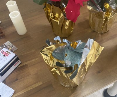 - Artificial Golden Wrapped Poinsettia Arrangement
