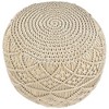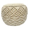 Northlight 18" Solid Cream Macrame Round Handmade Natural Cotton Pouf Ottoman