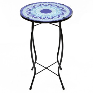 Northlight 19" Blue Sun Mosaic Glass Patio Side Table