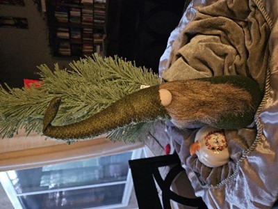 Bring a touch of whimsical charm to your holiday decor with this adorable holiday gnome decoration. This gnome features a soft body and a pointed hat in a festive forest green color. His long brown beard add to his charming personality, while his weighted bottom ensures stability on any flat surface. Perfect for your mantel, bookshelf, or tabletop, this gnome will make a wonderful addition to your holiday decorations and is sure to bring a smile to everyone's face.