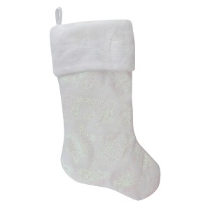 Northlight 22" LED Lighted White Iridescent Glittered Snowflake Christmas Stocking