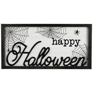 Northlight Framed "Happy Halloween" Spider Web Wall Sign - 23.5"