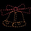 Let these golden bells accented with a red bow add festive appeal to your holiday decor this season. Red and amber LED tube lighting creates a bright outline on this 23-inch holiday window silhouette by Northlight. The energy-efficient decoration features a total of 130 LED lights and a four-function control box for steady, flashing and slow-fade modes. Decorate your home the easy way – from inside – with these bright and colorful holiday bells lighted window decorations.