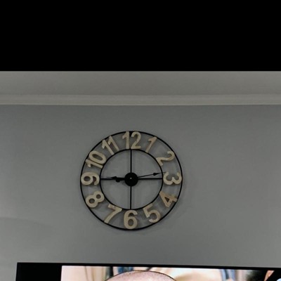 This unique clock is designed with whitewashed, block numbers and a metal frame. A great wall piece for an industrial decor design. You don't have to worry about electric cords since it is battery-operated.