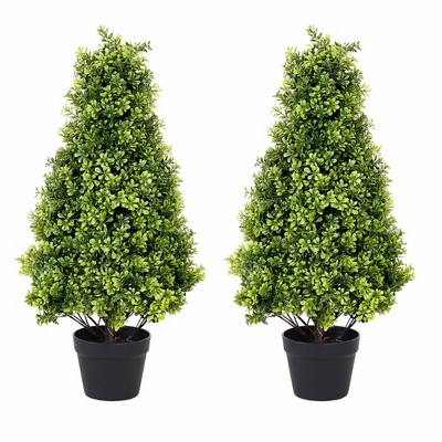 Northlight 25" Green and Black Potted Two-Tone Boxwood Cone Artificial Topiary Tree