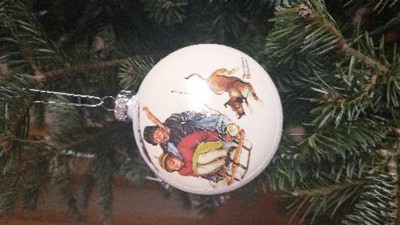 - Norman Rockwell 'Young Love: Sledding' Glass Disc Ornament