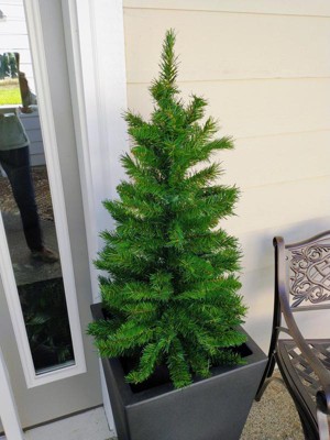 Bring a touch of evergreen elegance right to your door with this fantastic 3-foot potted holiday tree! This attractive, medium-profile beauty is designed to be a welcoming sight, making it ideal for flanking your front doorway, lining a walkway, or simply sprucing up a porch. Its 119 tapered tips give it a lush, full appearance, making it a highly convincing, realistic artificial holiday tree that delivers all the natural appeal of a fresh-cut pine without any of the maintenance—no watering required! The tree stands securely in a weighted green pot, which helps prevent accidental tipping, ensuring your display stays standing tall even when winter winds blow. Since this is an unlit artificial holiday tree, you get to choose your own lighting adventure! Wrap it in twinkling LED lights for a gorgeous glow that welcomes guests, or leave it bare to let its rich green needles steal the show. This cheerful mini holiday tree arrives in one piece with no assembly needed, so you can literally unbox and decorate! Grab a pair of these to frame your entryway, and get ready for a season that's truly pine-tastic! Product Features: Unlit 119 tips 1.5" wide tapered branch tips Medium profile tree Recommended for indoor use - if using outdoors, place under a covered area No assembly required – tree comes in 1 piece Comes in a sturdy, weighted green pot Dimensions: 3' high (from the base of the pot to the top of the tree) 18" base diameter (at the widest point) Pot: 4.5" high x 5" diameter (at widest point) Material(s): PVC/metal/plastic Note: Branches are compressed for shipment and need to be fluffed out upon arrival to look like the photo.