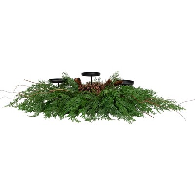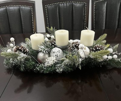 Northlight Frosted Pine and Pinecones with Laced Ornaments Christmas Triple Candle Holder - 32"
